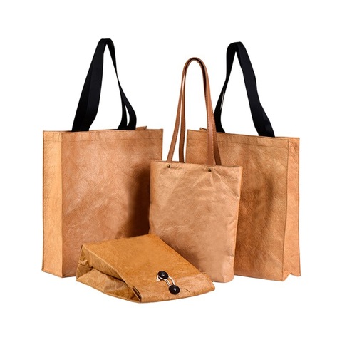 Bolsa de papel Dupont personalizada de lujo, bolsa de compras Tyvek de papel Kraft lavado reutilizable