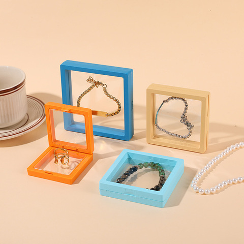 Caja de embalaje de joyería con pantalla de suspensión 3D con marco flotante transparente colorido tamaño completo al por mayor