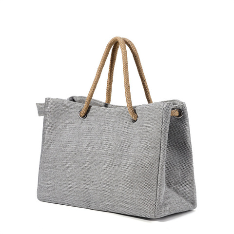 2025 fábrica caliente nuevo bolso de mujer bolso de hombro de lino de gran capacidad Color sólido moda Casual bolso de mano