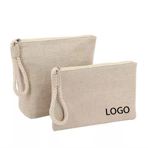 Bolsa con cremallera portátil personalizable, funda de almacenamiento de cosméticos de tela de lino y algodón de lona directa de fábrica para viajes, personalizada